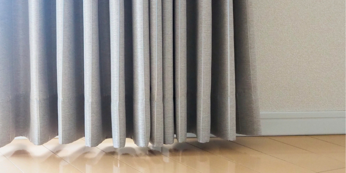 夏は窓から入る強い日射熱をカットし、冬は外の冷気をブロックすることで、エアコンの効きをサポートします。床まで届く長めのカーテンは、足元の冷え対策にも有効です。